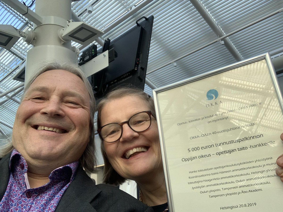 @SeijaKult ja allekirjoittanut ylpeänä vastaanottavat@oppijanoikeus - hankkeelle myönnetyn tunnustuspalkinnon. Palkinnnon myöntävät@oajry ja#Okka säätiö.@HAMK_UAS@jaana_muttonen@MarkkuJahnukai1@seppala_minna@jaakkohelander@HAMK_AOKKpic.twitter.com/OWBnNmbaqG