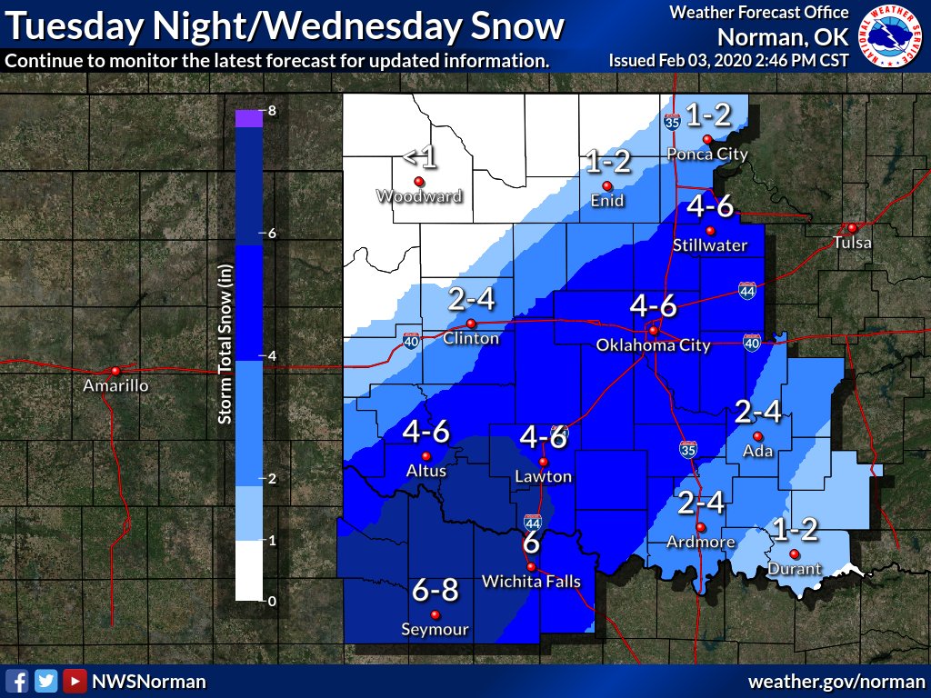 Winter Storm Warnings and Advisories are in effect for Wednesday afternoon through Thursday morning. A vast majority of the upcoming snow will accumulate over northwest Oklahoma. Here is the latest thinking for