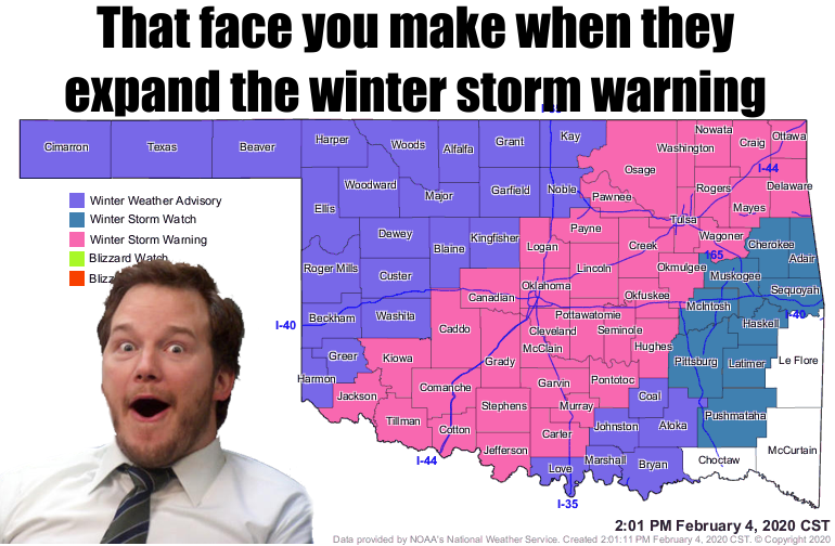 #okwx: - How much will it snow? - Will travel be impacted? - Are witches behind the storm (again)? - Should I buy insecticide to defend my home against the ice spiders that emerge from their frozen tombs? -
