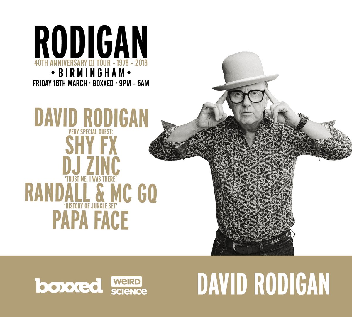 @DavidRodigan 40th Anniversary Tour : Birmingham We are so excited for this at @boxxedwarehouse#OldSchoolDnB