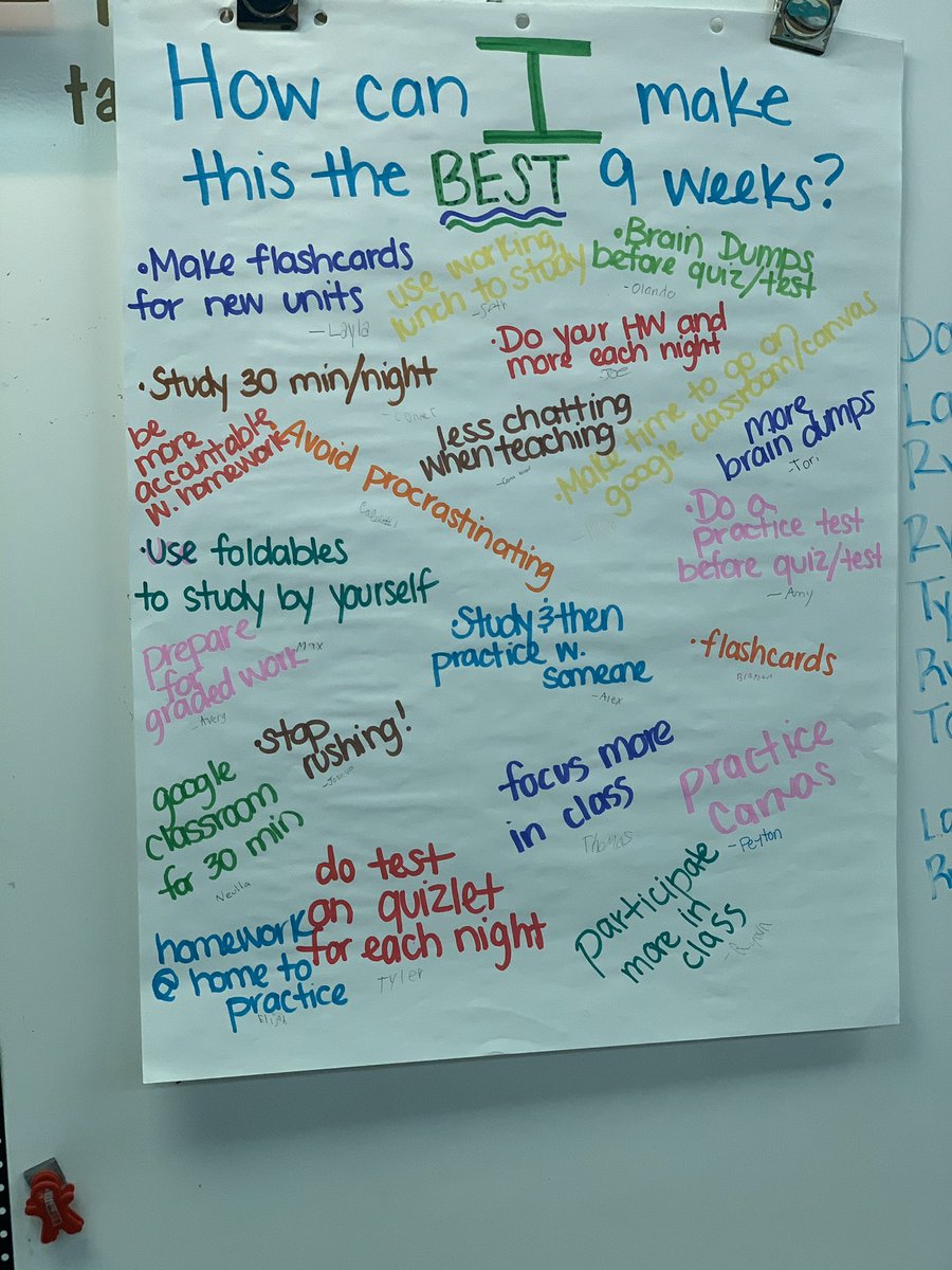 4th graders are making plans on how to make this the most successful 9 weeks of the year. We brainstormed ideas on how to make improvements and plan for this quarter