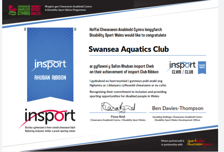 We are delighted to announce the club have been rewarded the Ribbon Award for providing sporting opportunities from Disability Sports Wales.