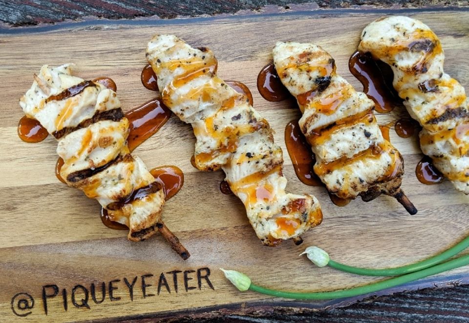 We think our Mediterranean skewers pair well with a balsamic drizzle.