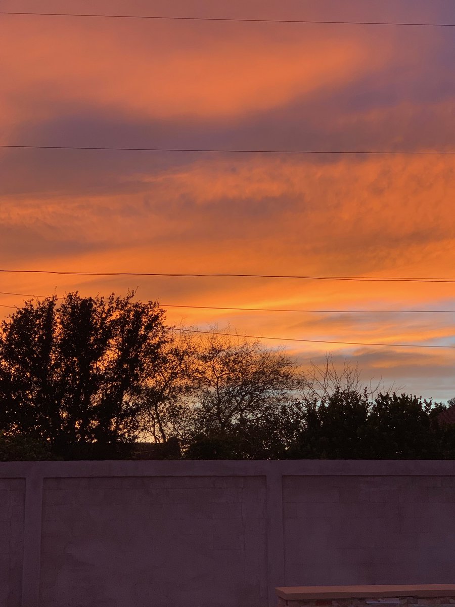 #Sunset skies. Is that a siver lining or a contrail, that I see?#stormhour#clouds#Orangeskies#silverliningspic.twitter.com/oWIMw6JPlm