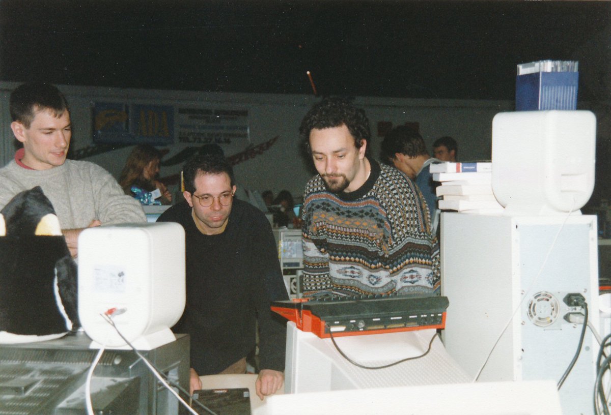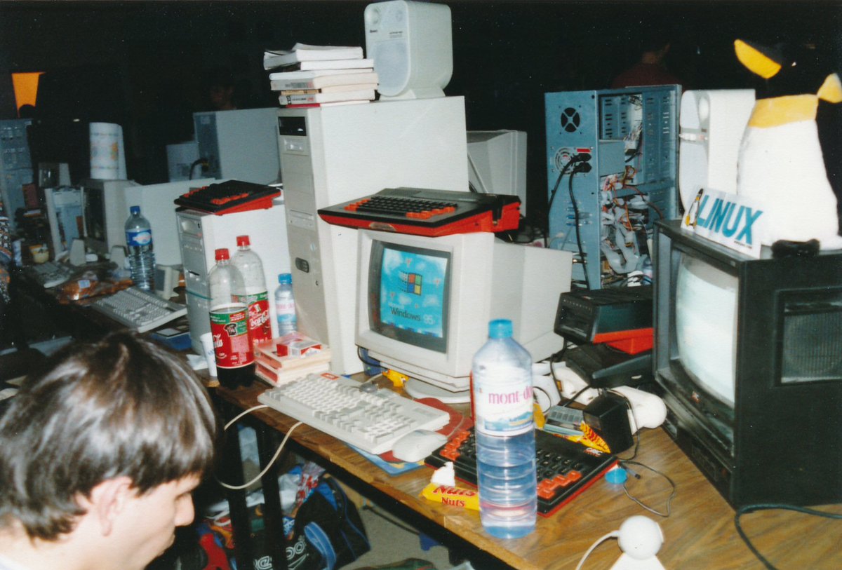 Found some old photos taken during the Volcanic 4 demo party, was probably the earliest presence of Oric computers in this type of event, I'm not sure of the exact date, but the back of the photo shows they were developed in March 1998.