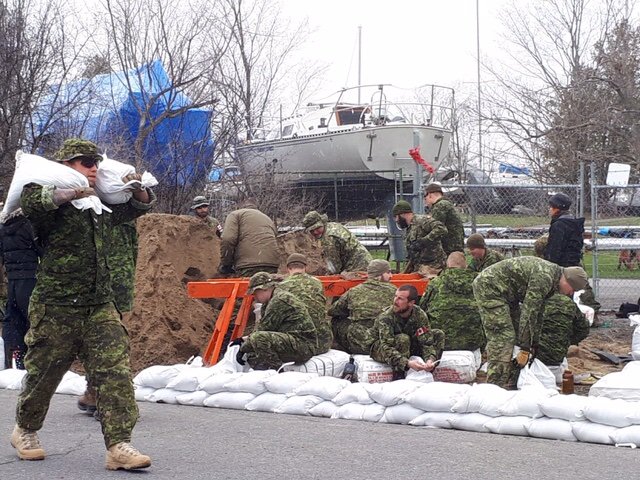 A big thank you to the Canadian Forces soldiers who were sandbagging in Britannia to shore up the access road to the water purification plant which supplies drinking water to half of