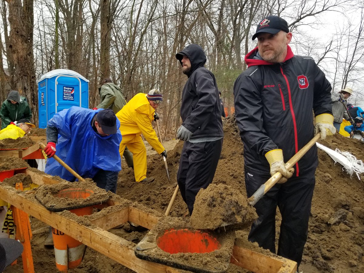 Proud of this team today. Players, coaches, support staff. Everyone is out filling, lifting or stacking sandbags. Time off being put to great use.