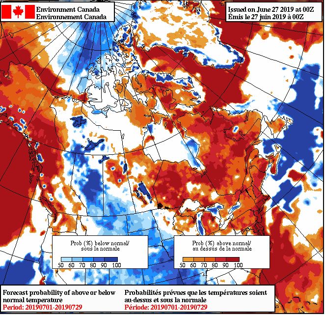 Hot Fun in the Summertime. Environment Canada's monthly outlook predicts ABOVE NORMAL temperatures for Ottawa over the next four weeks.