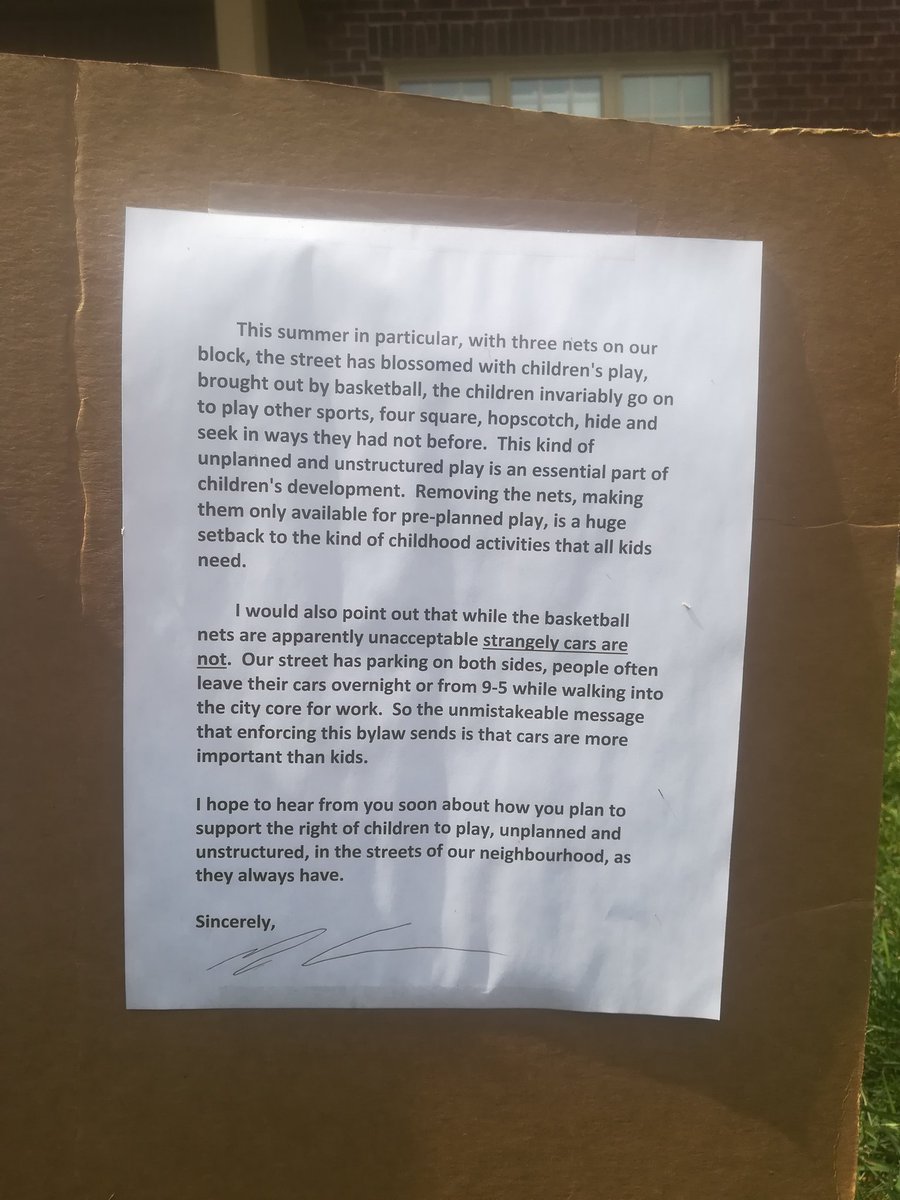 Found this on my street today Lots of kids play outside with basketball nets during the summer, it'd would be nice if we could put their health and well being before cars.