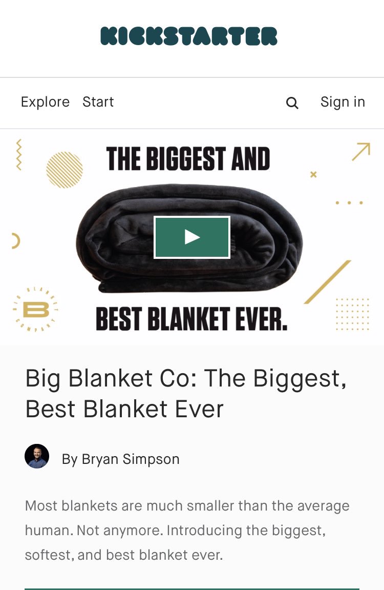 #Kickstarter is winding down. Don’t miss out on the last chance sale on a Big Blanket. https://kck.st/2Tu9Udd@kickstarter#crowdfunding#design#gizmodo#wired#kickbooster#gearpatrol#GQ#menshealth#hgtv#nba