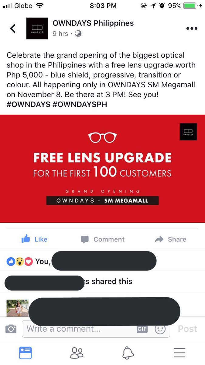 #OwndaysPH for the complementary cleaning of lenses, and they did it without any questions asked. They were probably confused at the start when I came in speaking in English. Sorry po! -