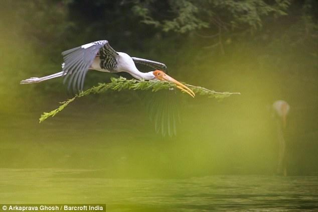 #PaintedStork on its way with nesting material near a riverbank in New Delhi, India @ Barcrfot pic.twitter.com/UyaMWDqOlW