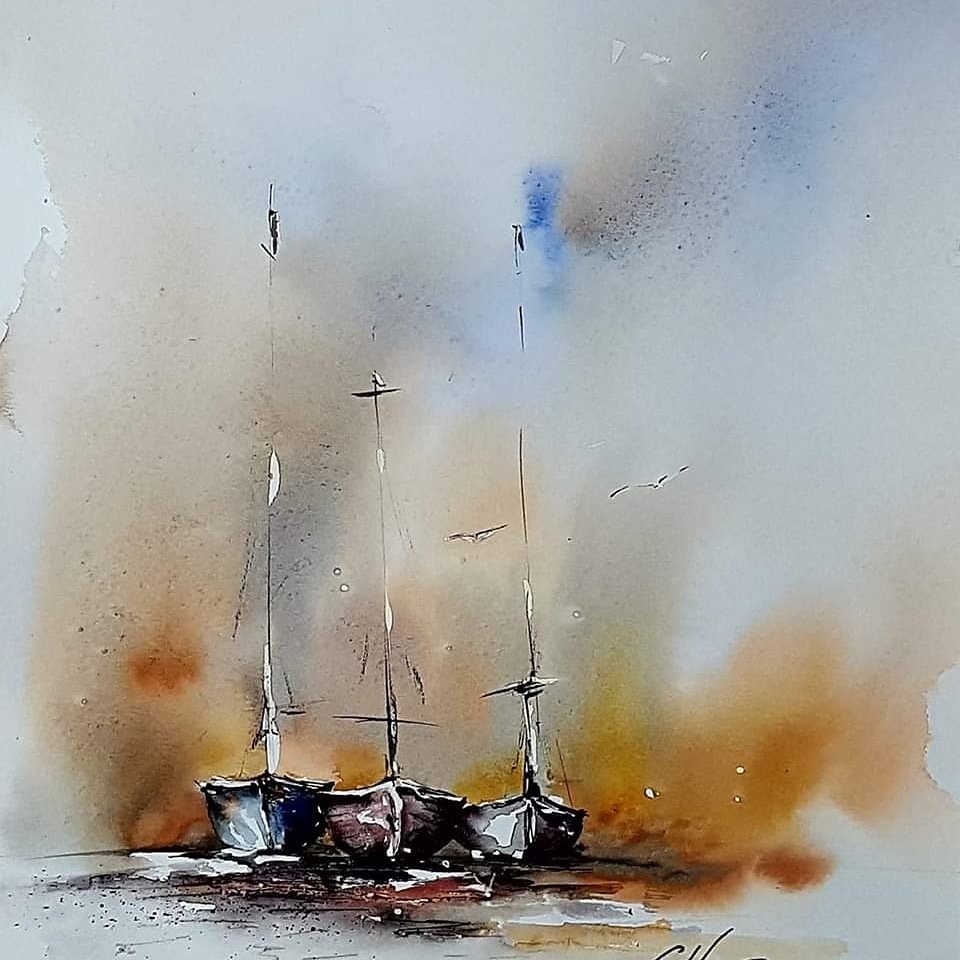 Three Boats, watercolour.