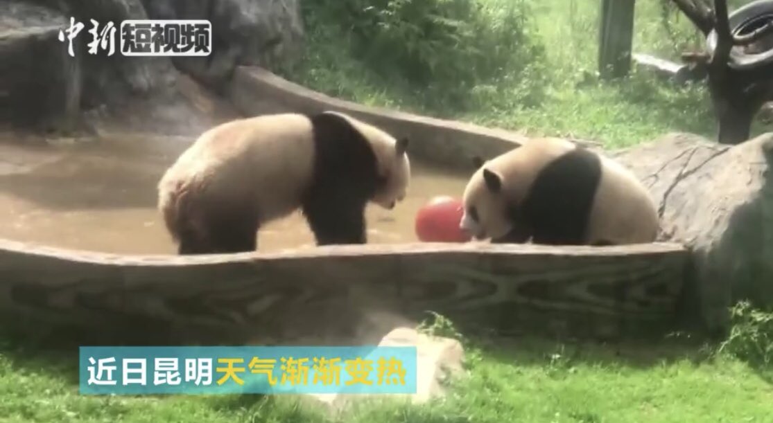 #pandas at#Yunnan Wildlife Park tried cooling themselves off by playing in the water as temperatures in Kunming, Yunnan Province, gradually rose. http://www.ecns.cn/m/video/2018-07-09/detail-ifyvvuhv1812405.shtml …pic.twitter.com/S5yhB9Qphg