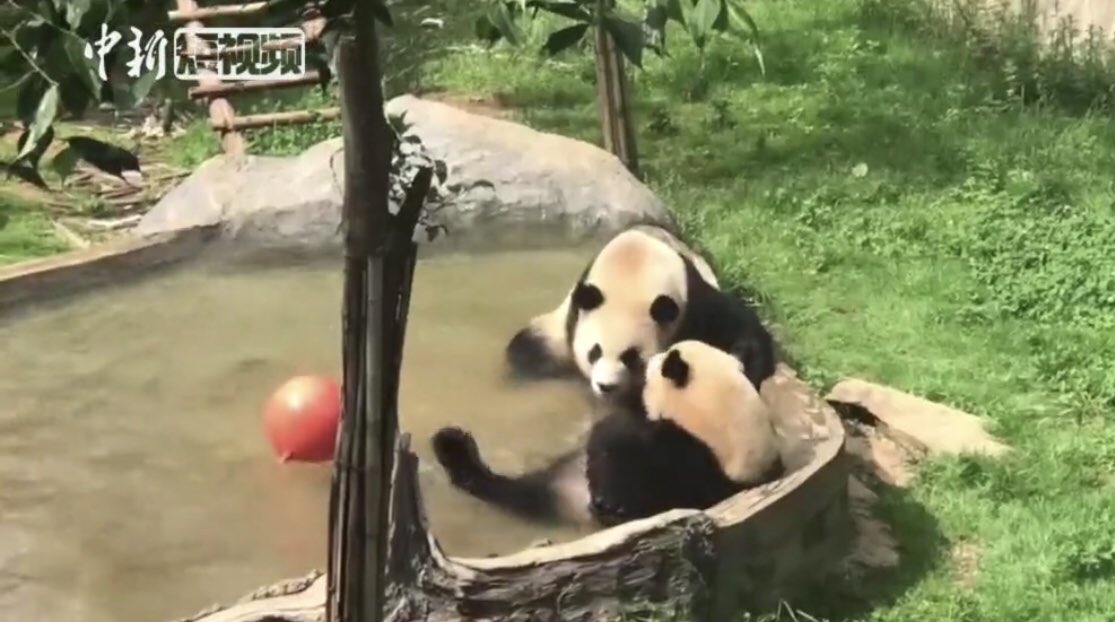 #pandas in northeast China's Jilin Province beat the heat with ice cubes pic.twitter.com/XHC4UmL1Ox