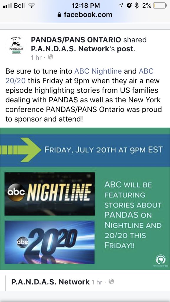 Mark your calendar! ABC News Nightline ABC 20/20 This Friday July 20th, ABC’s Nightline and ABC 20/20 will feature stories about PANDAS. Please check your local listings for air times as they can vary depending on your region.