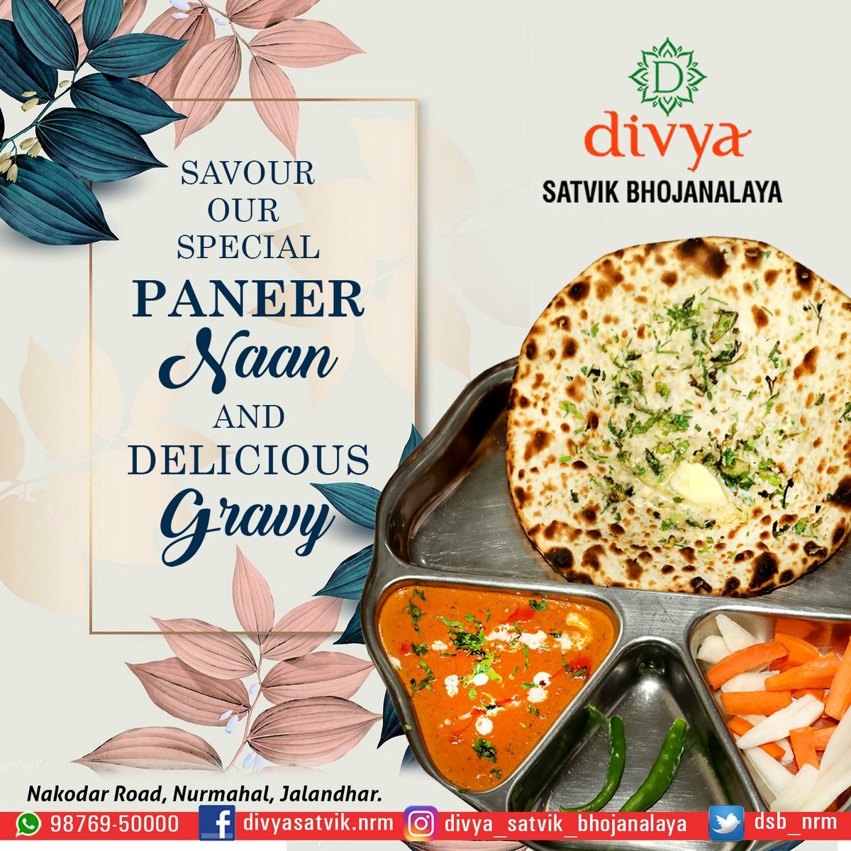 #paneer_naan with delicious gravy....A Perfect day depends on#Delicious food.. Come and join us for a#brilliant#experience of fine dine with#authentic Satvik bhojan at Divya Satvik Bhojanalaya,#Nakodar Road,#Nurmahal (#Jalandhar) Call : 98769 50000.pic.twitter.com/RKFp9P0J9C
