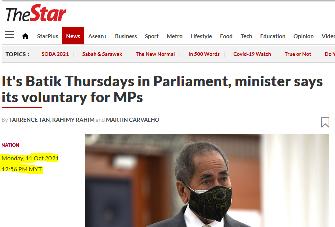 #Malaysia, a lesson in priorities. On the same day, our Ministers and MPs decided that it was far more important to discuss if#batik is permissible on the#Parliament floor than the missing billions revealed in the Pandora Papers. pic.twitter.com/Fx6HL6iNkj