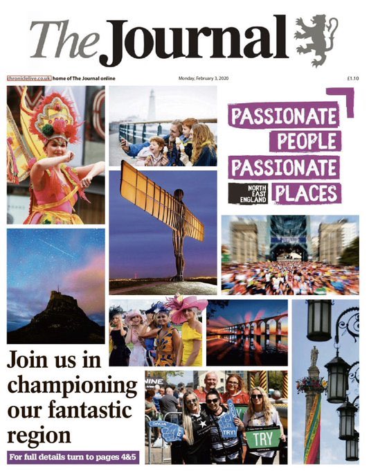 #PassionatePeople#PassionatePlaces campaign in the#NorthEast Together with@discovernland &@VisitNland . Great front page of@TheJournalNews which also needs to be reflected in general news coverage & tone! WE ARE THE HOME OF AMBITION OPEN TO THE UK & WORLDpic.twitter.com/5MamQNjzK1