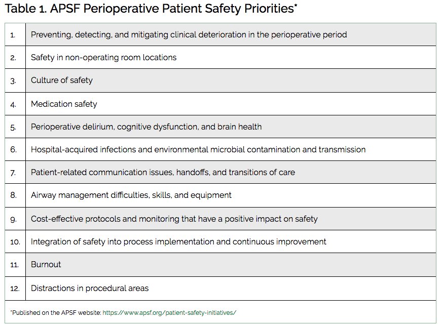 #patientsafety priorities for 2018? Weigh in with comments below, and let us know what you think the Board of Directors should pick for 2019 at the February meeting!@mlanefall@DrMStiegler@apsfsafety#ptsafety#NewYearsResolutions https://www.apsf.org/article/apsf-highlights-12-perioperative-patient-safety-priorities-for-2018/ …pic.twitter.com/CHBT0vuLUh