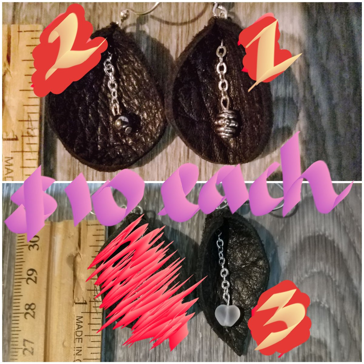 Hi Pals. If interested please DM. We have posted how many we have of each pair. Post will be updated as they sell. Handmade from upcycled leather jacket. Proceeds going to next shelter run. Shipping included