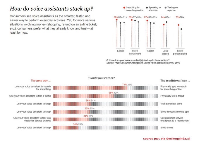 #VoiceFirst? Consumers say#VirtualAssistants as the smarter, faster, and easier for some activities >>>#PwC via@MikeQuindazzi >>>#AI#Chatbots#FinServ#FinTech#Banking#Payments#IoT#Smarthome >>> https://pwc.to/2Is83E7 pic.twitter.com/jT7MjdOrXw