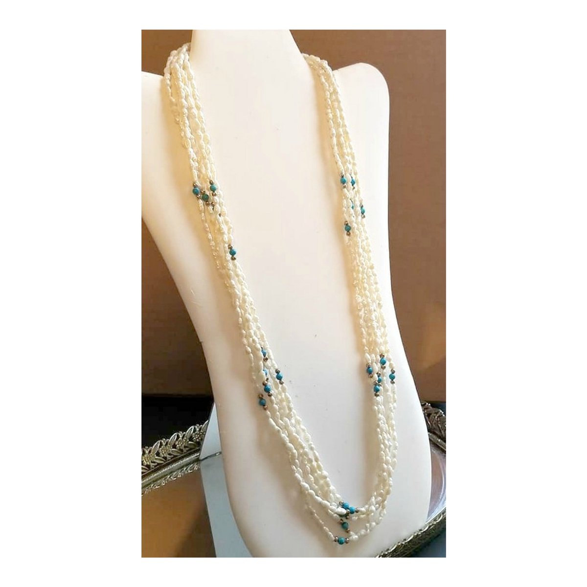 Vintage 5 Strand Freshwater Rice Pearl Necklace with Turquoise Beads and Clasp 1960s https://etsy.me/2RWkMmc