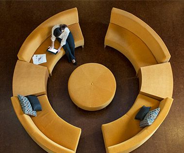 Proof that a pop of colour can have a transformative effect, the signature version of our HIDDEN Hills sofa has been given a sunny outlook with mustard-toned cushions in this contemporary apartment.