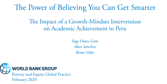 #RT@WBG_Education: New@WorldBank research paper evaluates academic impact of brief growth-mindset intervention on students starting secondary level in public schools in urban#Peru. The results show the potential such interventions have for developing … pic.twitter.com/I39zoWAL4B