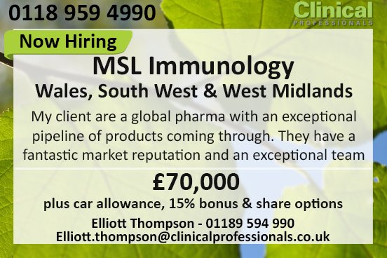 MSL Immunology - Wales, South West, & West Midlands £70k + benefits