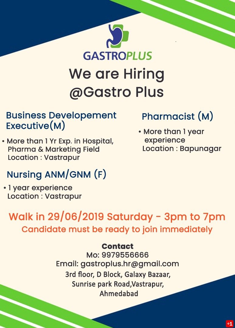 #Nursing ANM/GNM (Female)#Pharmacist (Male)@GastroPlusIndia in#Ahmedabadpic.twitter.com/WwHFXif0uP