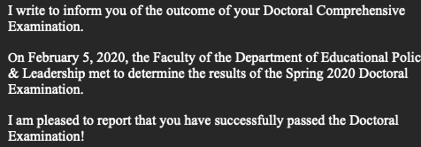 The academic equivalent of ironman that I entered into with a ton of apprehension. I am so thankful for those who have supported me; especially my family. I am so grateful it worked out!! I am closing in on the final steps. Yeah!!