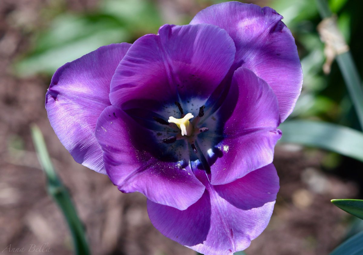 #MondayBlues with this late blooming#tulip 'Bleu Aimable' ... a unique beauty with shades of deep lilac and blue covered with a satin sheen ....and a center highlighted with cobalt blue