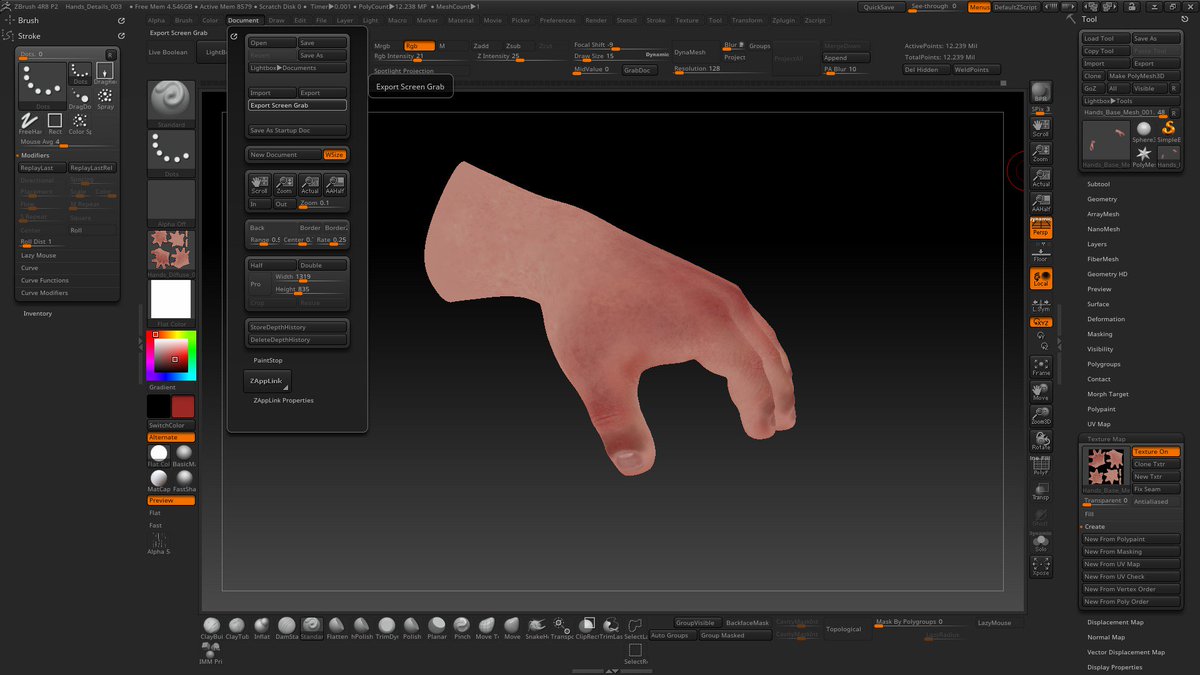 I've been buisy on client work, now back to work on this character! I added the nosetrils and hand painted his hands in zbrush