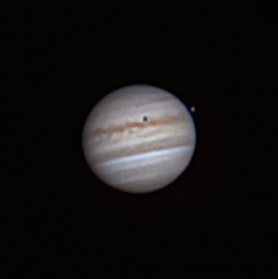 #Ganymede is transiting#Jupiter right now. This is an IR shot taken 25 minutes ago.#Io is in attendance as well :)#astrophotography#space#astronomy#planets pic.twitter.com/KpR55Jbzg7