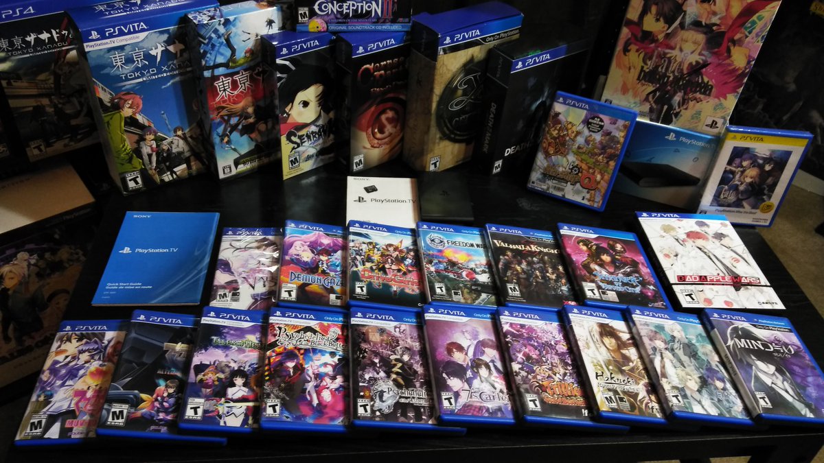 #Vita and the#PlayStationTV a very special shout out on#WednesVitaDay due to sony Ending PS Vita production. This idea came from@Dragonrider4923 post but I wanted the PSTV to be recognized as well plus my small yet awesome collection. Who games on PSTV?pic.twitter.com/Tbj7A5U26i