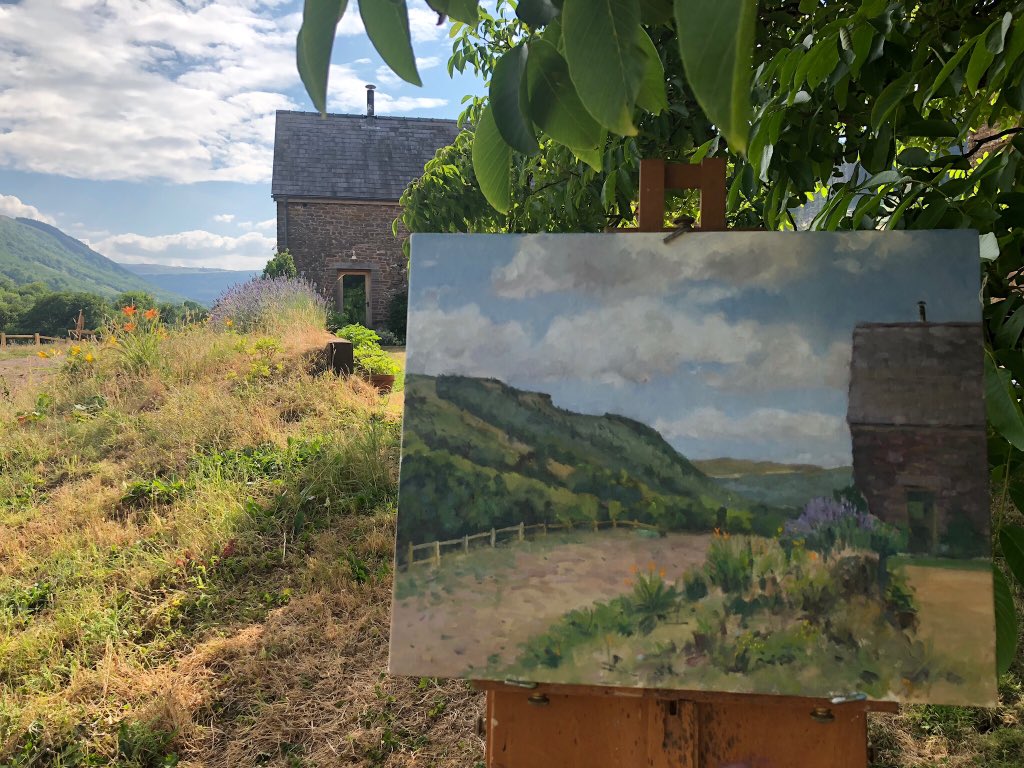 #stapletonkearns with @welshacademyofart Here’s Lucy’s view, painted from under a shady spreading walnut tree.#pleinair#oilpainting#welshlandscape#toohotinthesunpic.twitter.com/yAqq4NkMkG