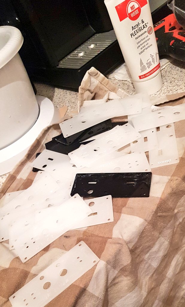 #plexiglas is never ever my favorite thing! Not by hand. Build many front and back covers for the#minitiouner with the laser and to remove that "fog", polished them. Think they can be shipped next week