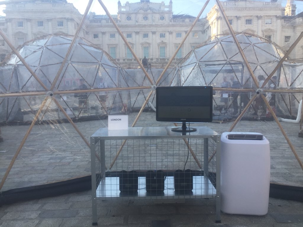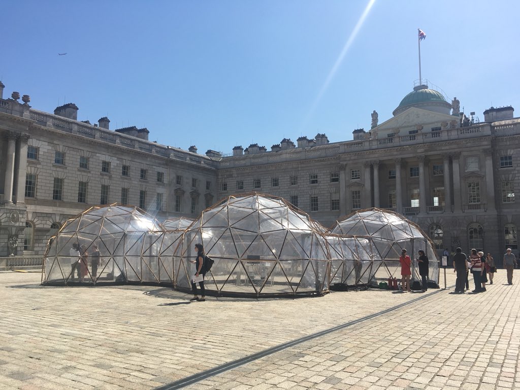 #PollutionPods, in the forecourt of Somerset House, claim to reproduce the air pollution conditions of five cities pic.twitter.com/a6gwO4M8Hg