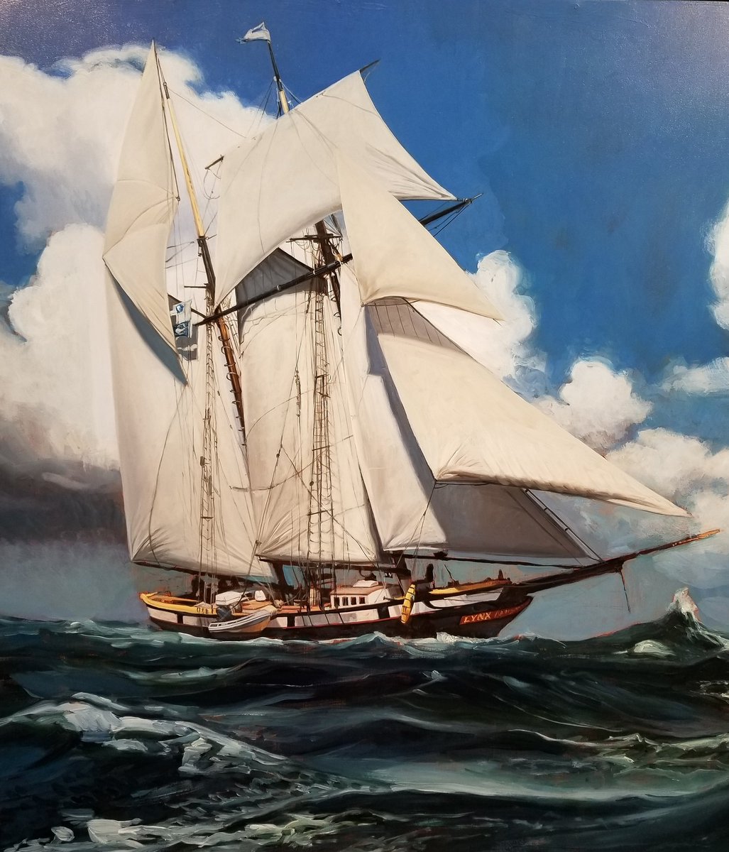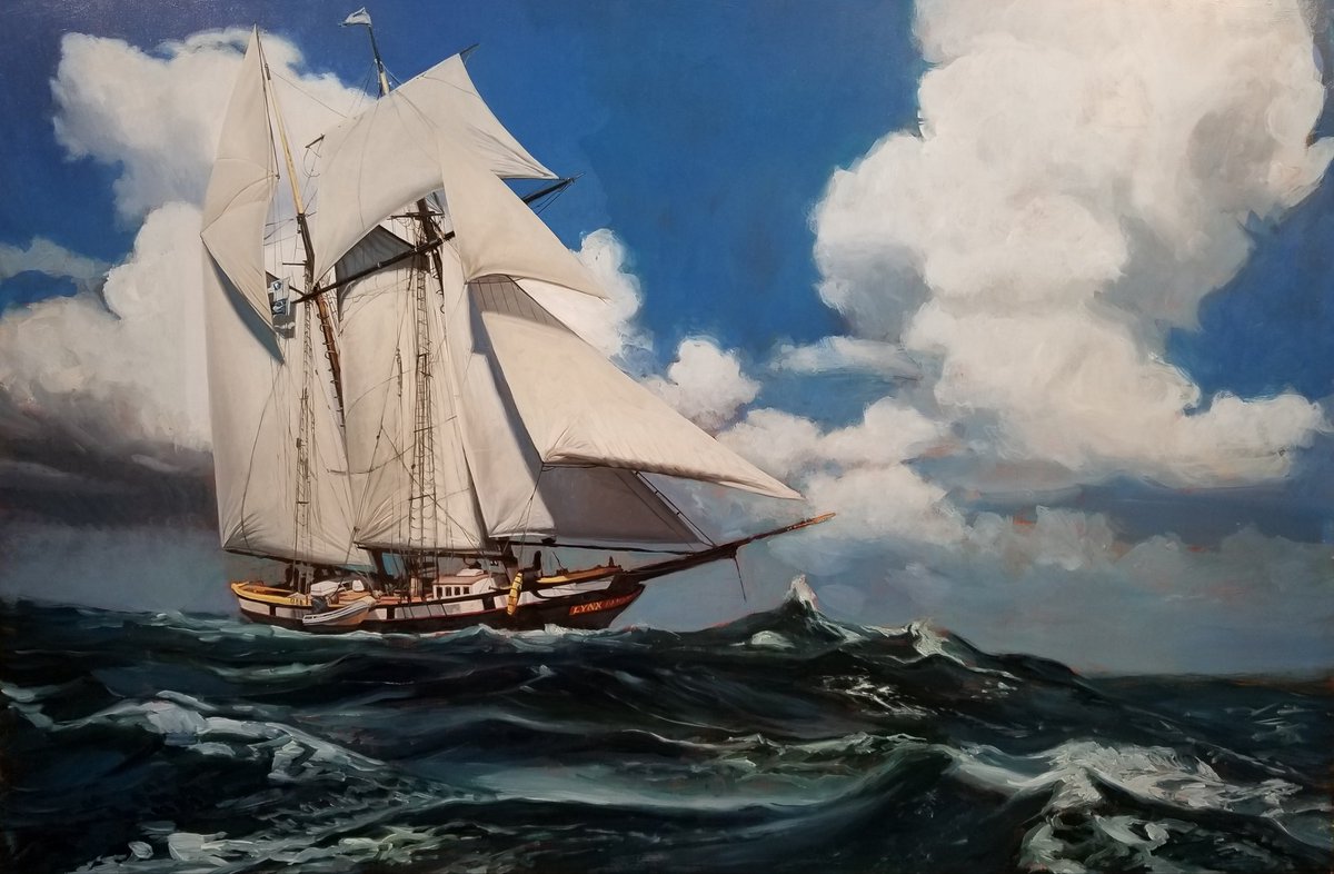#sails of the#Lynx! This piece is really going well! See my entire#portfolio at http://www.kevingrass.art !#TallShip#TallShips#Sailing#Sailboat#Boating#Windjammer#Schooner#Seascape#painting#realism#ContemporaryArtpic.twitter.com/8vgQctryhA