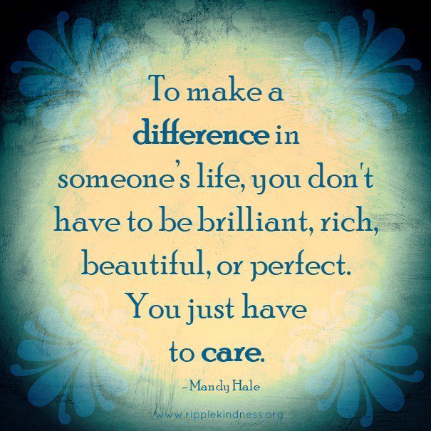“To make a difference in some one’s life, you don’t have to be brilliant, rich, beautiful or Perfect. You just have to care.”