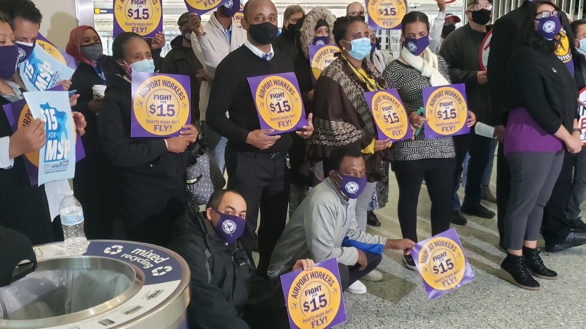 Last month, after years of rallies, strikes, and protests, contracted airport workers at MSP Airport won $15 an hour by July 2022, as well as crucial policies to protect workers and retain jobs. Another win! https://www.startribune.com/msp-airport-adopts-15-an-hour-minimum-wage-by-2022/572799172/ …