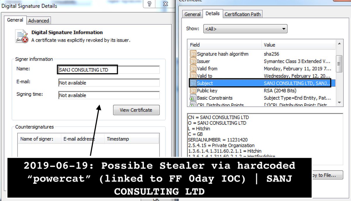 & PE32 Payloads (Linked to #Firefox#0day#IOCs) |#Malware#Stealer via#PowerCat (C2: 89.34.111. 113) | Signed