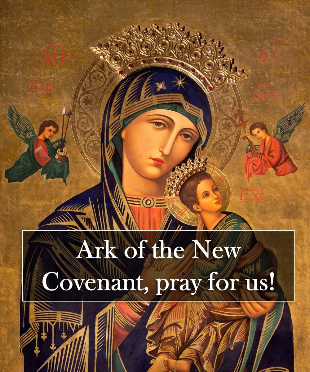 Hail Mary, Full of Grace, The LORD is with thee. Blessed art thou among women, and blessed is the fruit of thy womb, JESUS. Holy Mary, Mother of GOD, pray for us sinners now, and at the hour of our death. Amen! Mary, Mother of God, New Eve, pray for us!