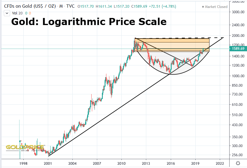 Gold has broken ALL the bear market down-trend resistance lines on log and non-log charts. Just horizontal resistance 'zones' between here and the old highs