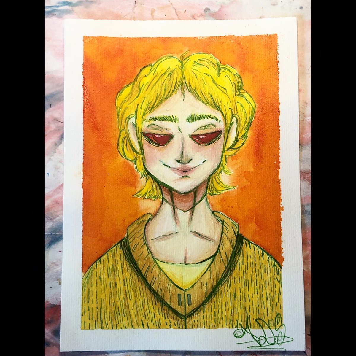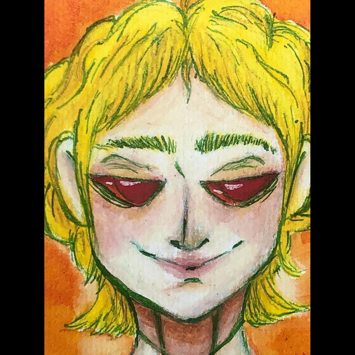 My birthday week was pretty fun. #watercolor#prismacolorpencils#prismacolor#watercolorpainting#fabercastell#redeyes#yellow#orange#blonde#cuteboypic.twitter.com/zw9ELtNDek