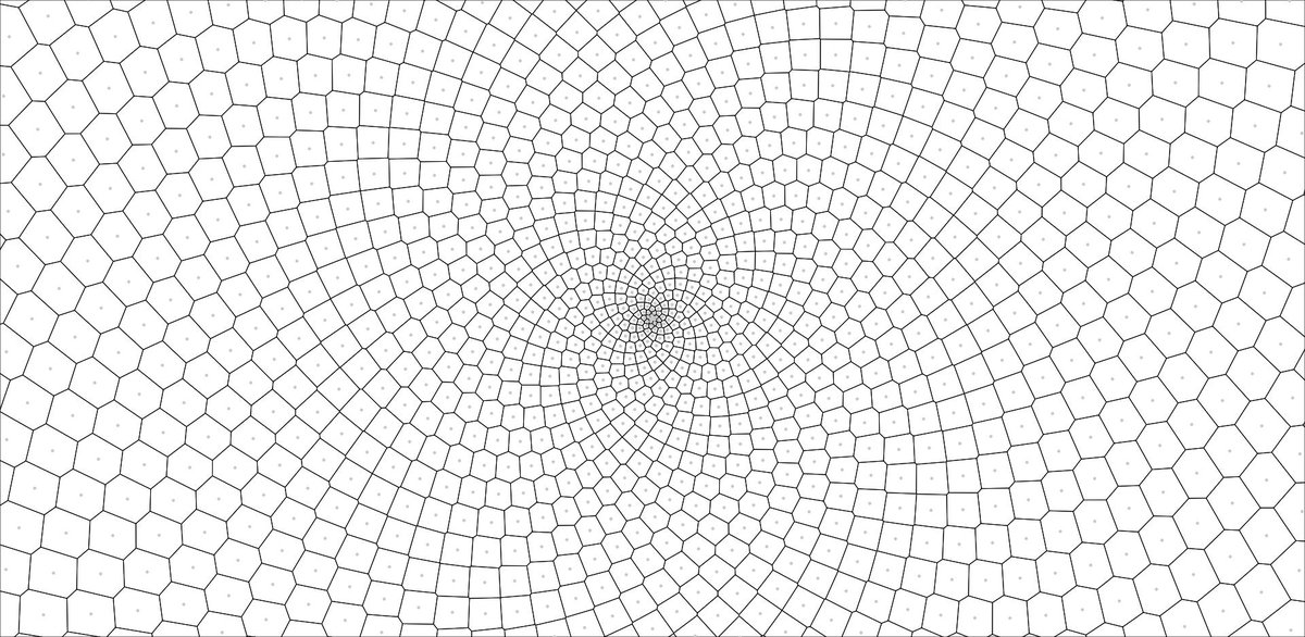 #Voronoi cells arranged with#phyllotaxis - a phenomenon seen often in botany in the arrangement of leaves, petals, seeds, succulents, and more.#creativecoding#p5js#javascript#processing#codeart#generativeartpic.twitter.com/pOndCNsSOP