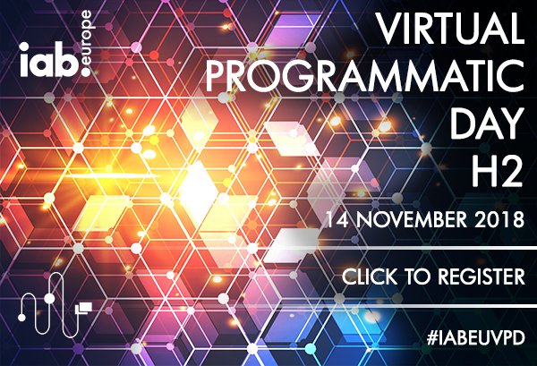 [VIRTUAL PROGRAMMATIC DAY H2] We invite you to register for the IAB Europe Virtual Programmatic Day H2 2018 where we'll discuss growth opportunities and barriers of programmatic in Europe. Register here: http://bit.ly/2JAGkNO