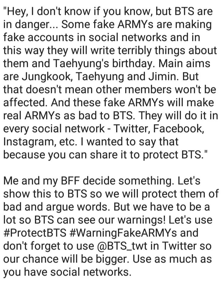 EVERY real ARMY must to read! Let's protect BTS of Fake ARMYs! And Bts I hope this will reach to you and you'll be happy without paying attention to the haters. Because haters do not know what is talent and they envy.