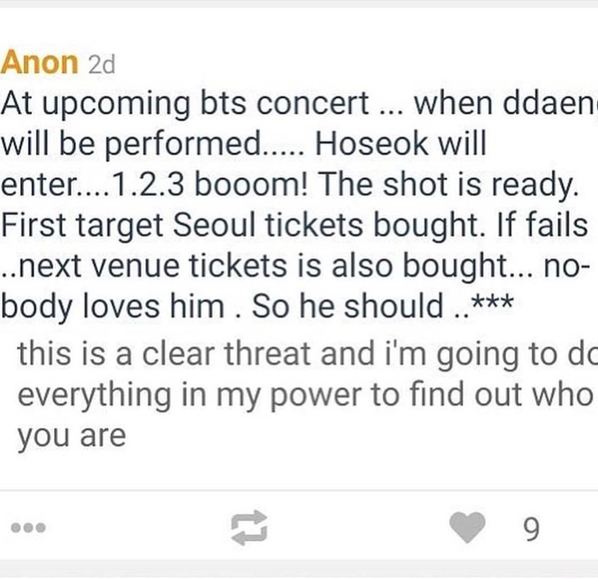 this is a break from the usual fun and happy content i post. hoseok has gotten death threats. we have to take action to